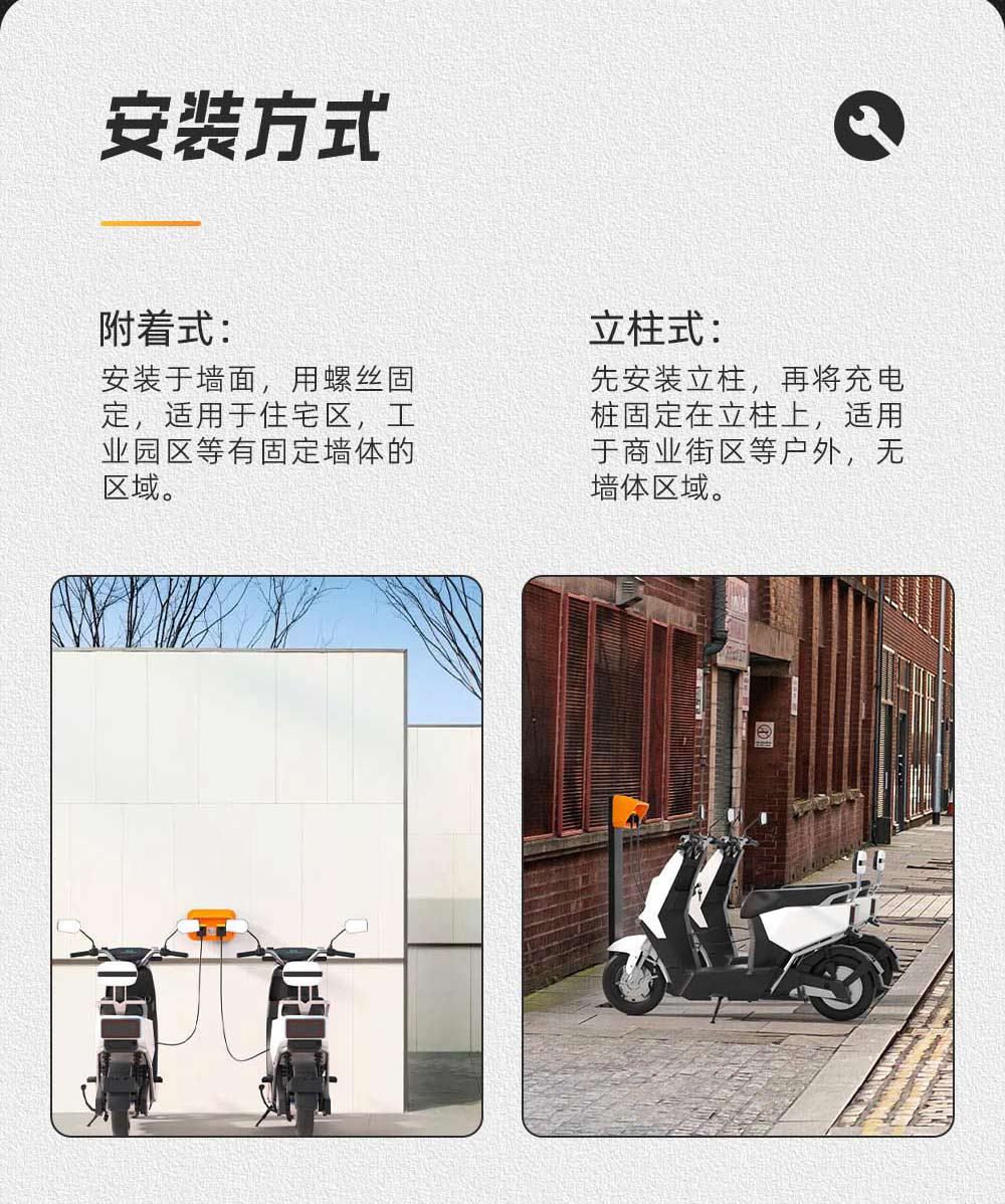 生活住宅區(qū):過(guò)去,居民們常常為了給非機(jī)動(dòng)車充電而絞盡腦汁,從高樓窗戶私拉電線,不僅麻煩而且存在極大的安全隱患。有了智能充電樁,居民們可以在小區(qū)內(nèi)輕松找到充電的地方,無(wú)需再為充電問(wèn)題煩惱。